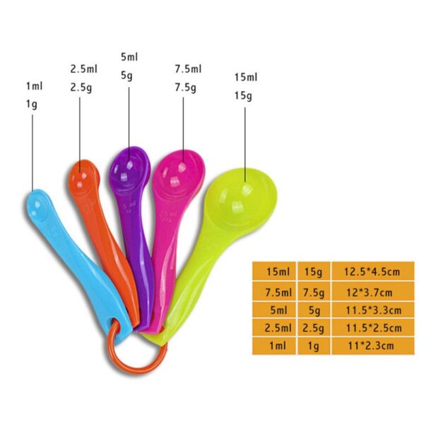 Includes five measuring spoons: 1ml, 2.5ml, 5ml, 7.5ml, 15ml.