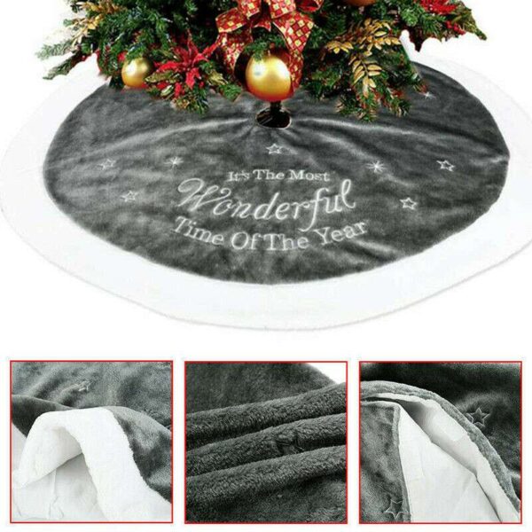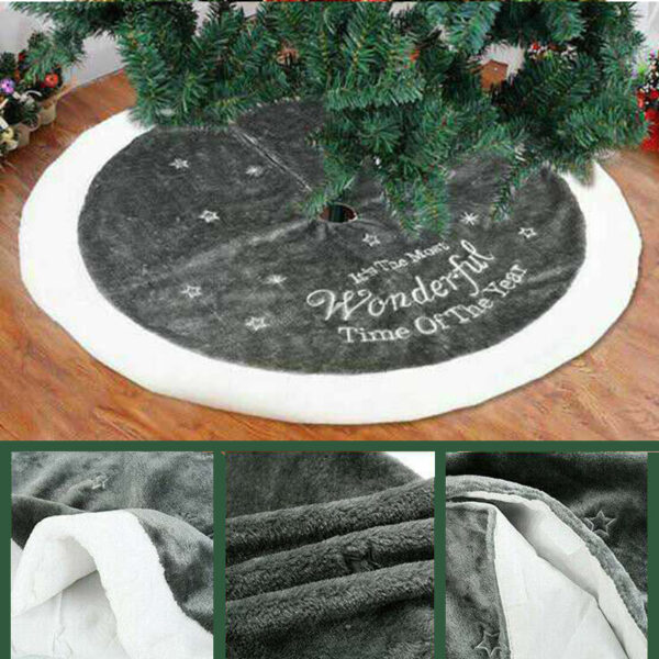 90cm Luxury Grey Fur Christmas Tree Skirt Festive Home Xmas Snowflake Decor