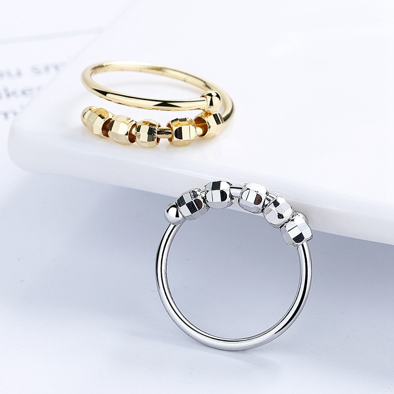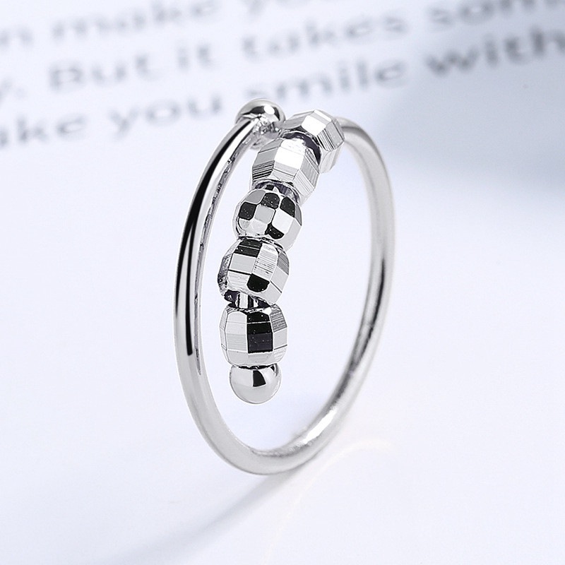 Anxiety Fidget Ring Silver Jewelery Womens for Stress Relief Adult Bead Rings