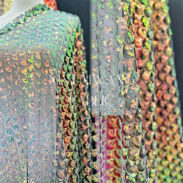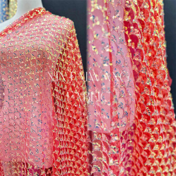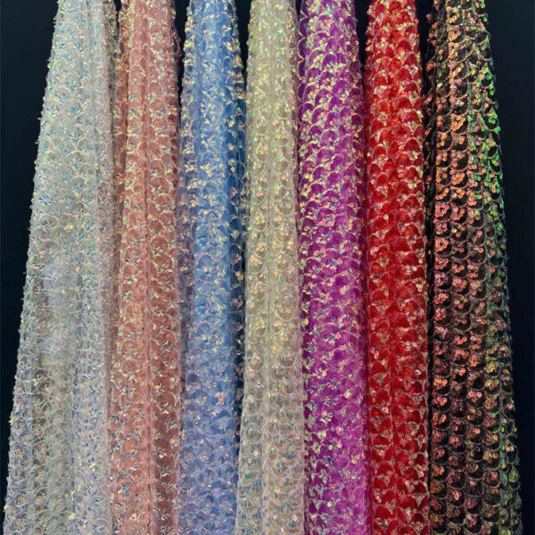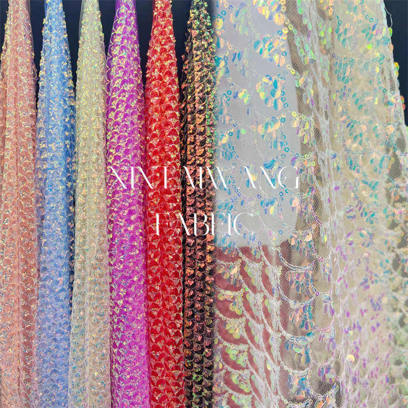 Colorful Concave Piece Dress Fabric DIY Mesh Sequined Embroidery Cloth Lace