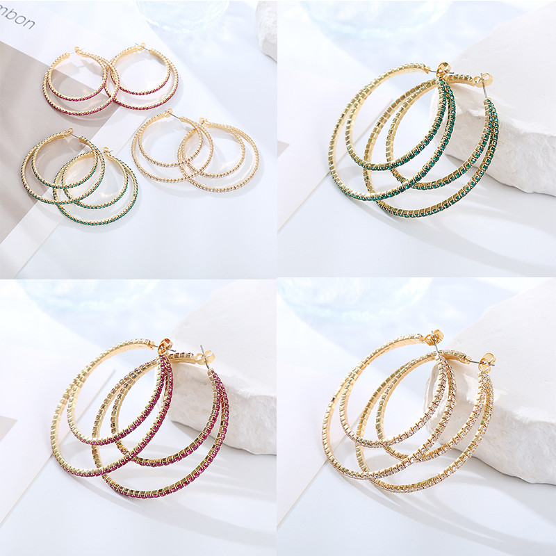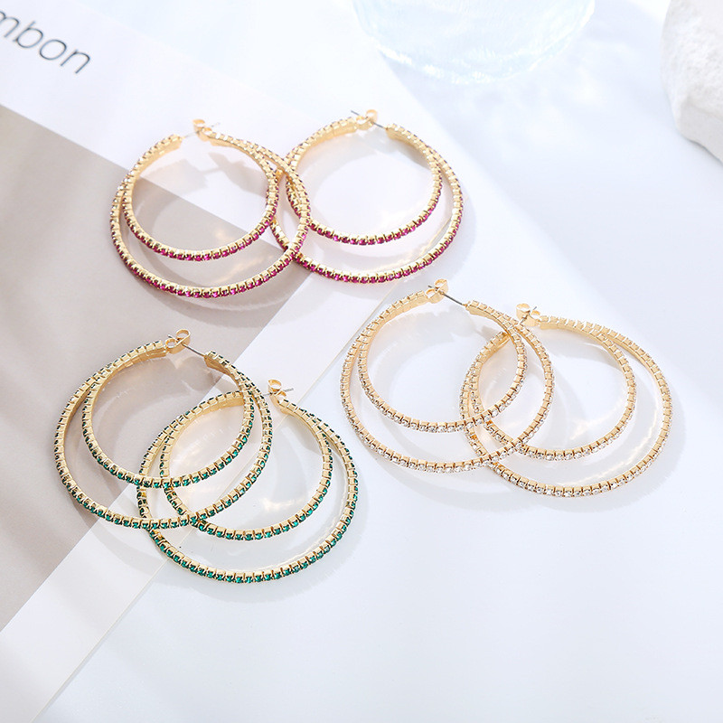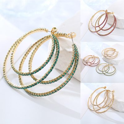 Fashion Geometric Size round Rhinestone Earrings Niche Fashion Personalized Women