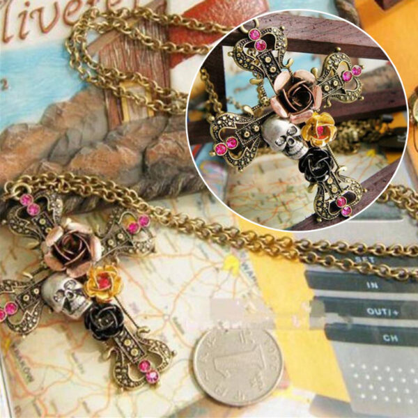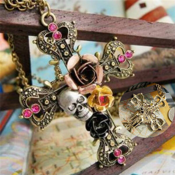 Fashion Gothic Punk Skull Rose Cross Necklace Pendant Gift Jewelry Chain Gift Xmas