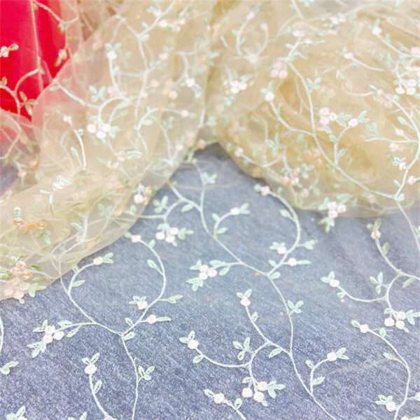 Flower Embroidery Tulle Fabric Soft Beige Lace Embroidery Lining DIY Clothing Fabric