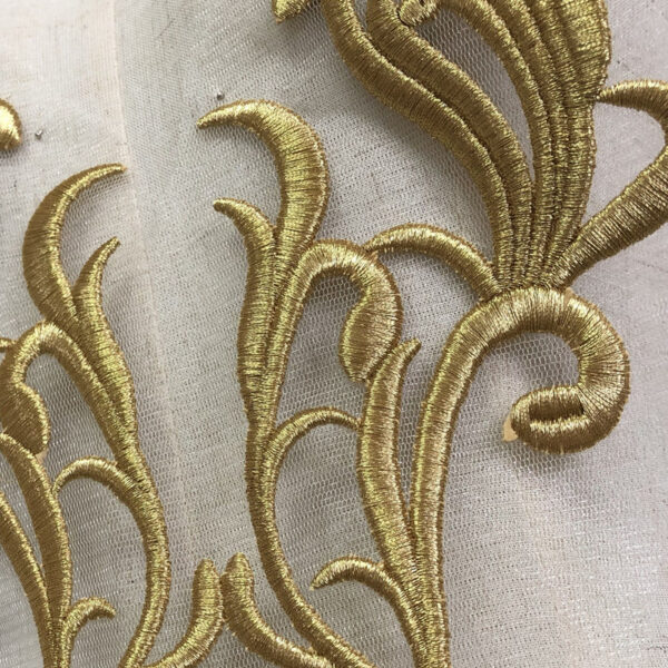 Hand sewn gold thread mesh embroidery collar decals