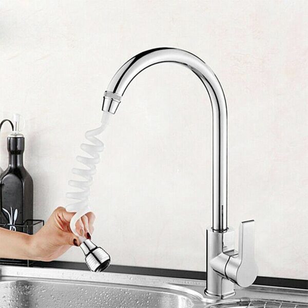 The extension hose of the tap extender can be stretched and rotated into 360 degrees.