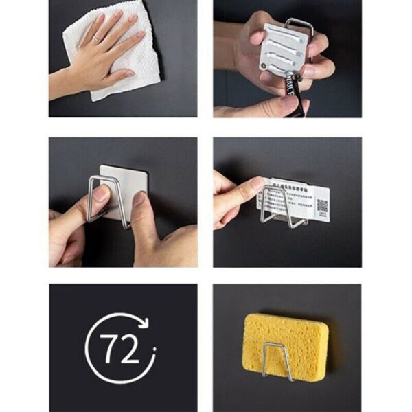 Usage:Clean the walls or glass.Tear the glue on the back.Attach the sponge holder and press firmly.It’s better to wait 24 hours before hanging things.Specifications:Material: 304 stainless steel + adhesive.Size: 4.5*4.5*3.4cm.Color:silverPackage Included:1pc * sponge HolderNotes:1. Due to the different monitor and light effect, the actual color of the item might be slightly different from the color showed on the pictures. Thank you!2. Please allow 1-3cm measuring deviation due to manual measurement.