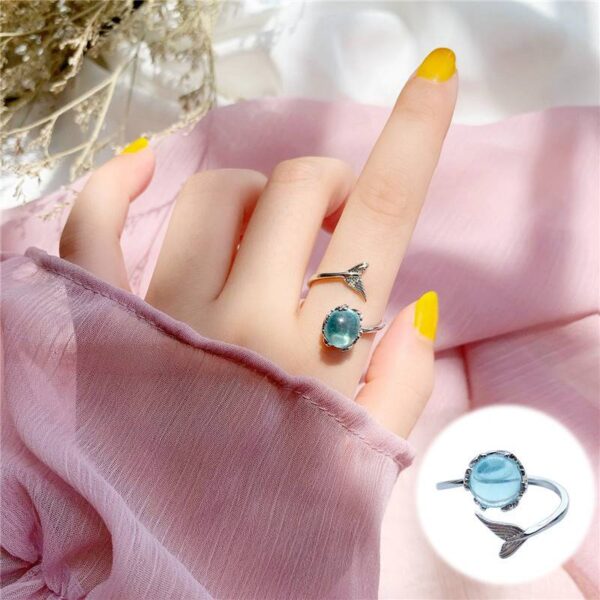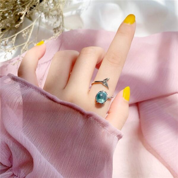 MERMAID TAIL & PRETTY STONE 925 SILVER ADJUSTABLE RING WITH GIFT BAG