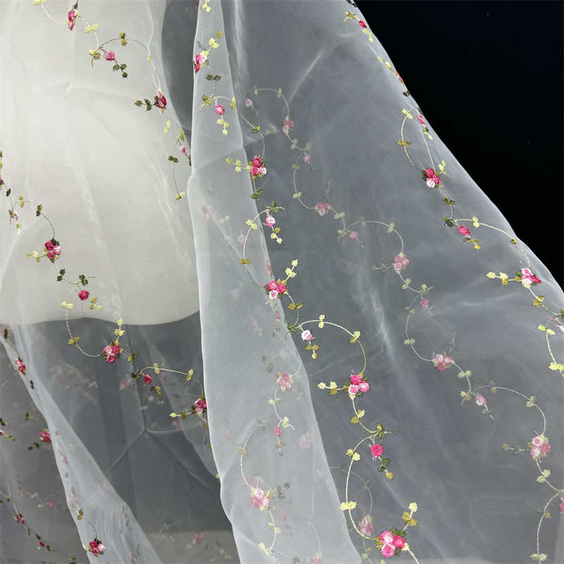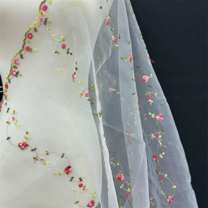 Organza Bottom Little Flower Embroidered Fabric Women’s Clothing DIY Embroidery Fabric