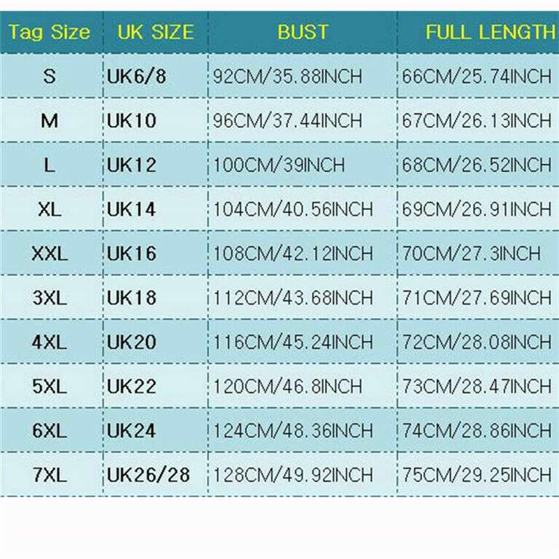 Tag SizeUK SIZEBUSTFULL LENGTHSUK6/892CM/35.88INCH66CM/25.74INCHMUK1096CM/37.44INCH67CM/26.13INCHLUK12100CM/39INCH68CM/26.52INCHXLUK14104CM/40.56INCH69CM/26.91INCHXXLUK16108CM/42.12INCH70CM/27.3INCH3XLUK18112CM/43.68INCH71CM/27.69INCH4XLUK20116CM/45.24INCH72CM/28.08INCH5XLUK22120CM/46.8INCH73CM/28.47INCH6XLUK24124CM/48.36INCH74CM/28.86INCH7XLUK26/28128CM/49.92INCH75CM/29.25INCH