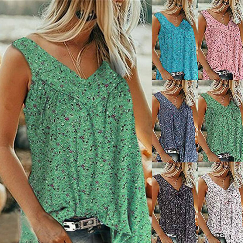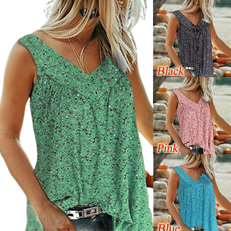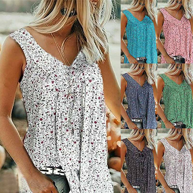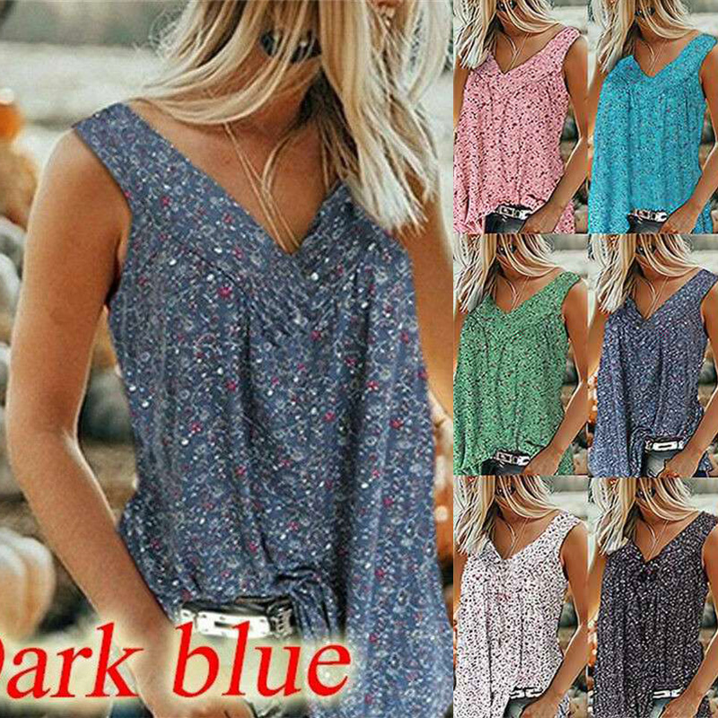 Plus Size Womens Sleeveless Floral Vest Tops Casual Baggy Tank Blouse Shirt Tee