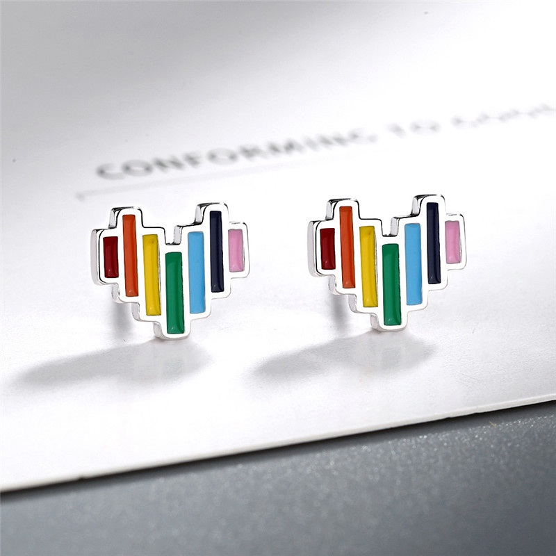 Rainbow Heart Stud Earrings Womens Girls Jewellery Gift UK