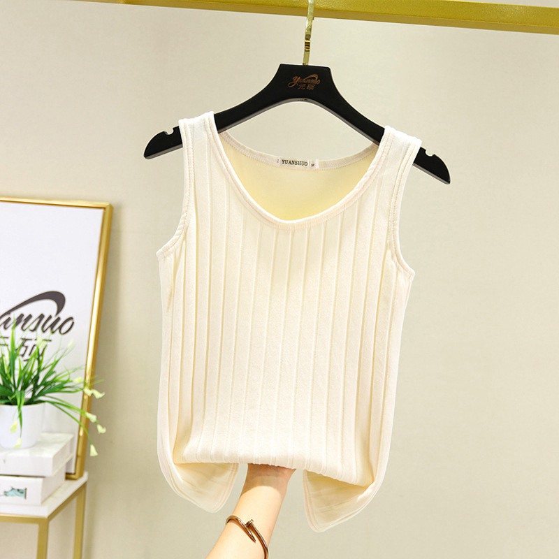 Super Soft Warm Vest Women’s Autumn and Winter New Fleece Lined Padded Warm Keeping Sling Versatile Inner Match Slim Bottoming Shirt