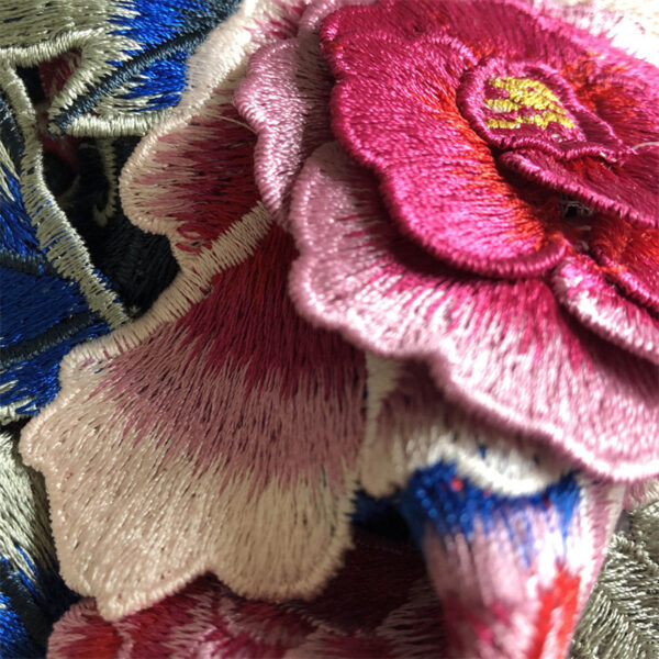 High end peony flower embroidered fabric patch, hand sewn