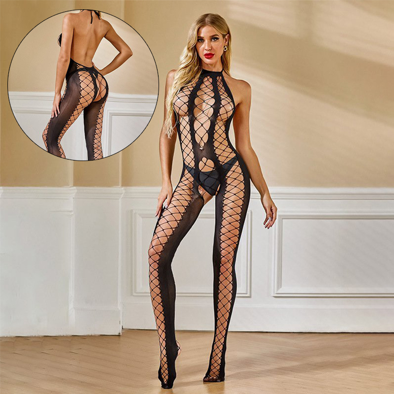 UK Women Kinky Open Crotch Body stocking Fishnet Bodysuit Fetish Bondage Catsuit