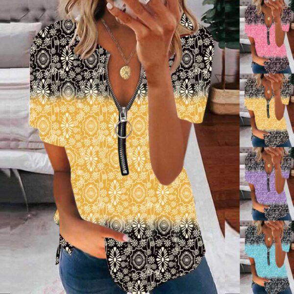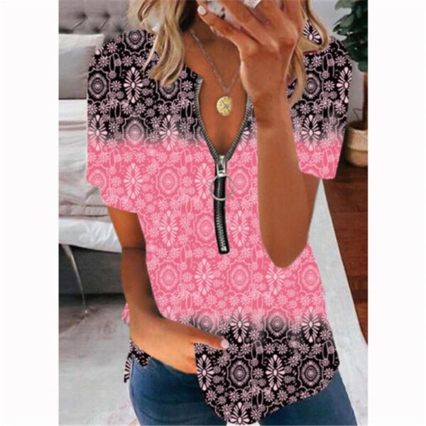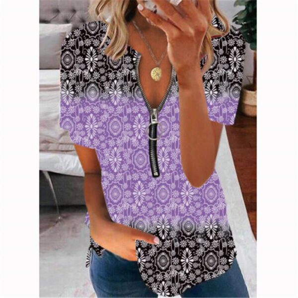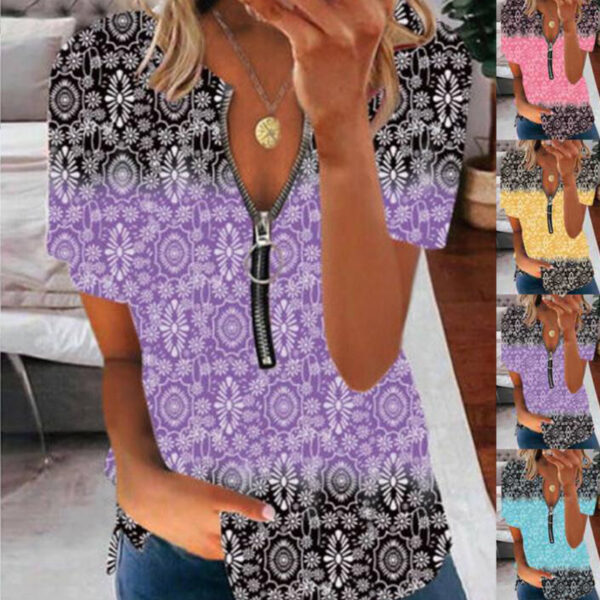 Brand New UK Womens Zipper Loose Basic Blouse Tee Tops