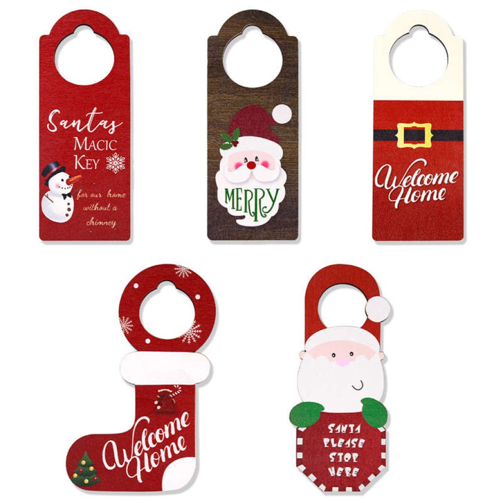 2PC Christmas Decor Wooden Door Hanging Santa Snowman Party Decor Door Handle Pendant