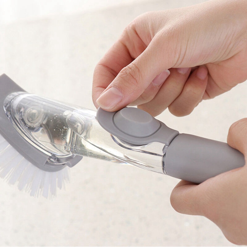 Kitchen Washing Dish Bowl Scrubber Clean Brush w/ Refill Liquid Soap Dispenser