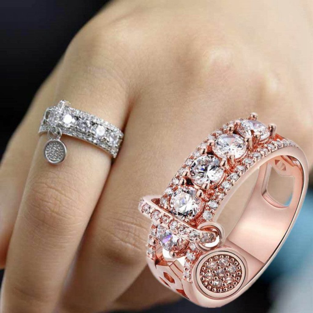 925 Silver Rings,Rose Gold Rings Women Jewelry Cubic Zirconia Girl Rings Sz 6-10