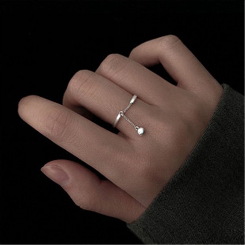 Tassel Adjustable Rings Chain Bead Pendant Ring Romantic Circle Geometric Ring