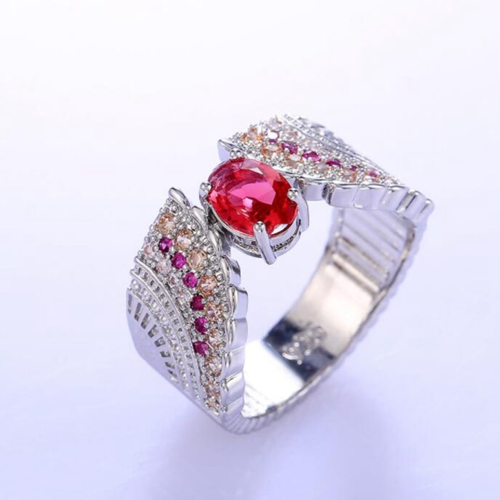 Gorgeous 925 Silver Ruby Oval Cut Ruby Jewelry Women Wedding Rings Size 6-10