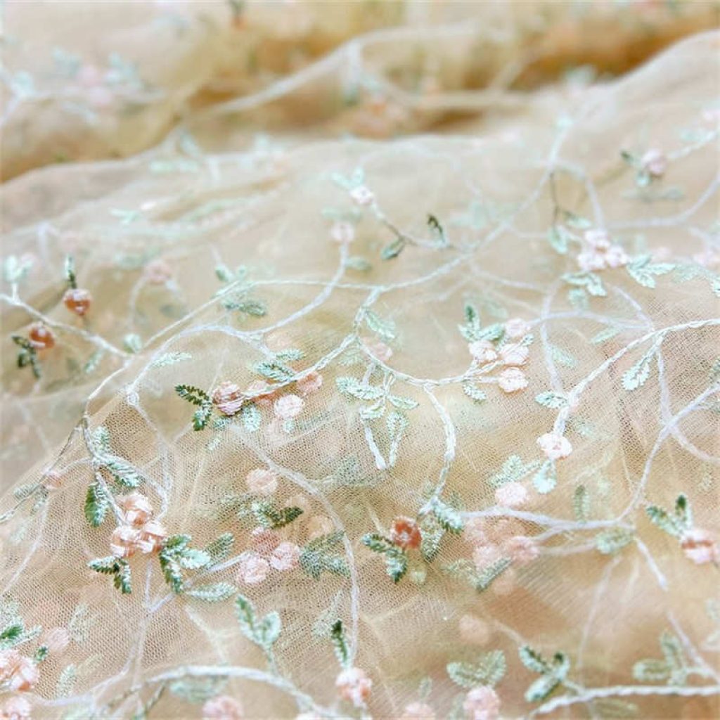 Flower Embroidery Tulle Fabric Soft Beige Lace Embroidery Lining DIY Clothing Fabric