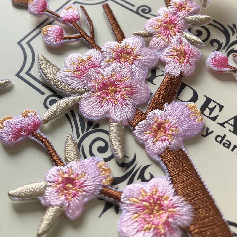 Pink Plum Blossom Embroidery Cloth Stickers Patch Hole Clothes Skirt Cheongsam Decoration Accessories Diy Adhesive