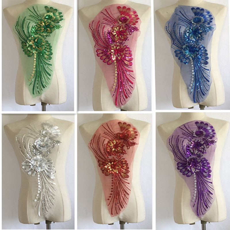 Three-Dimensional Sequin Gauze Embroidered Cloth Stickers Large Patch Cheongsam Clothes Skirt Decorative Accessories Diy