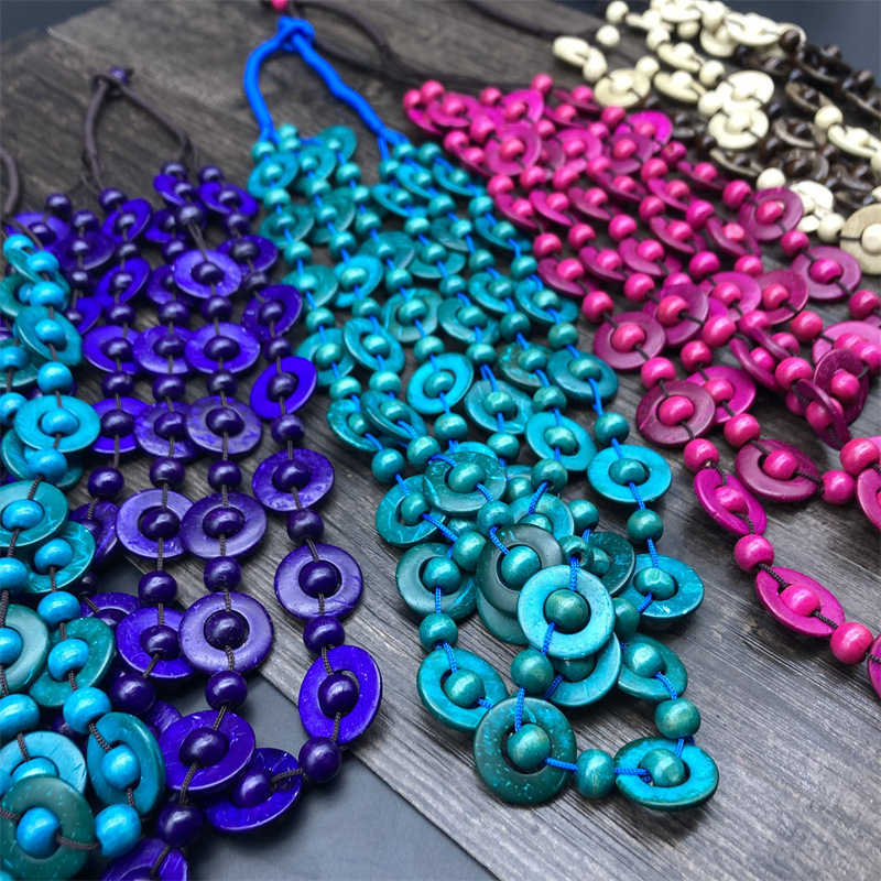 Wooden Three-Layer Beaded Necklace Bohemian Style Necklace Sweater Chain Necklace