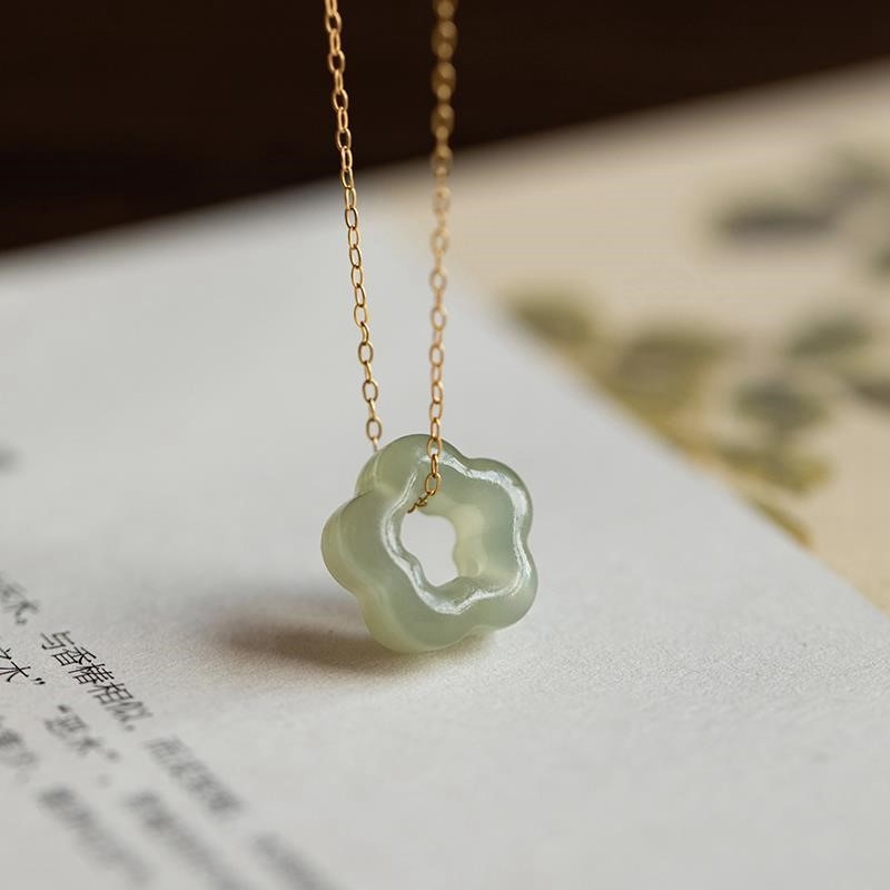 Natural Vintage Hetian Jade Necklace Plum Blossom Pendant Luxury Hollow Clavicle Chain Fashion Temperament Jewellery Accessories