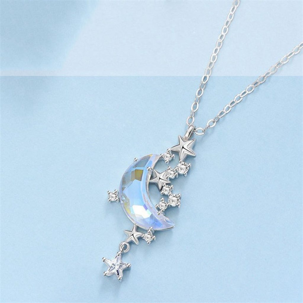 Half Crystal Moon Pendant Necklace Silver Plated Chain Women Ladies Jewelly Gift Half Crystal Moon Crystal Ladies Jewelly