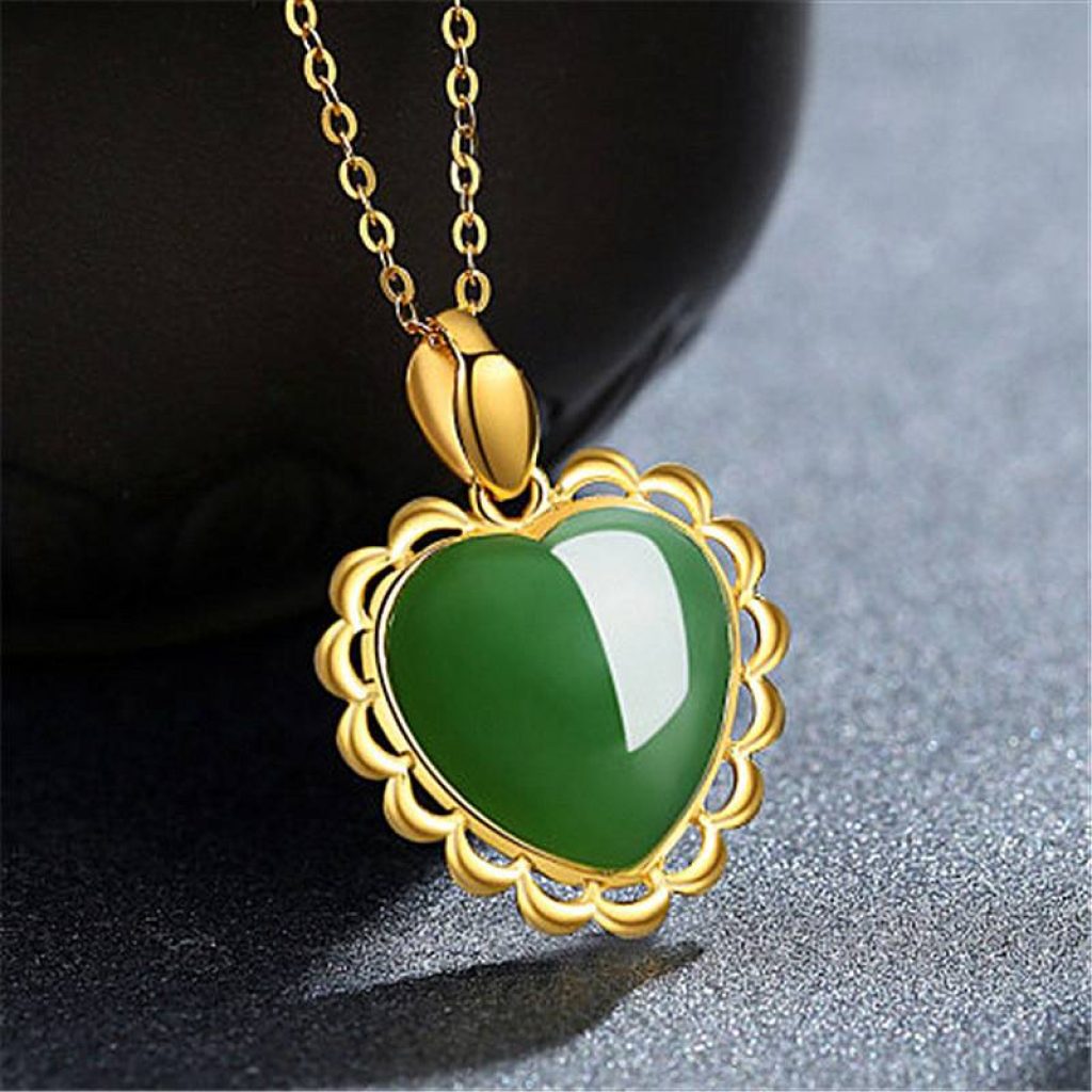 Gold Heart Stone Pendant 925 Sterling Silver Chain Necklace Women Lady Jewellery