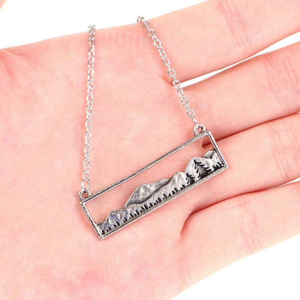 Mountain Range Pine Trees Pendant Necklace Landscape Jewelry Christmas