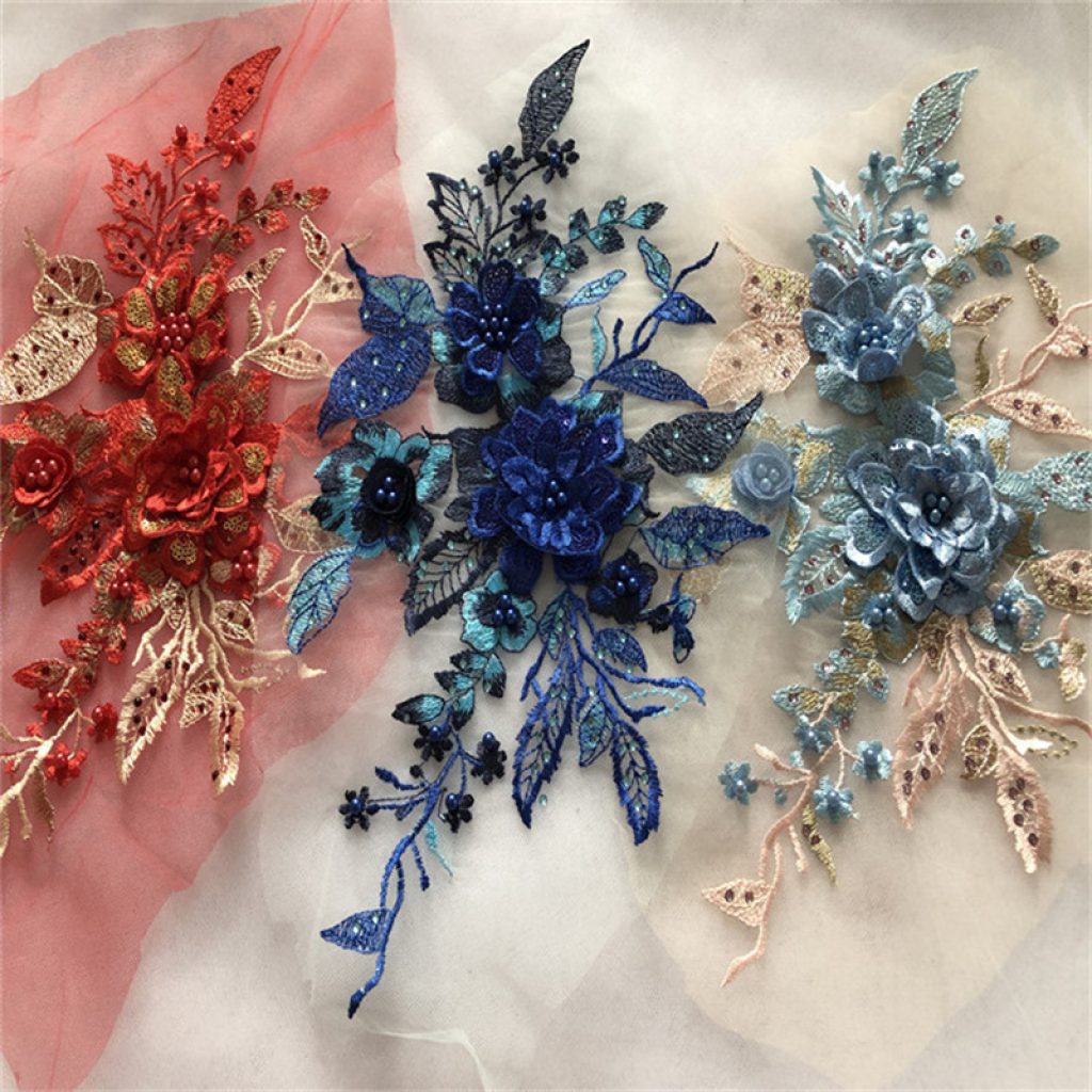 Flower Beaded Rhinestone Mesh Embroidery Fabrics Lace Dress Cloth Patch Clothes Repair