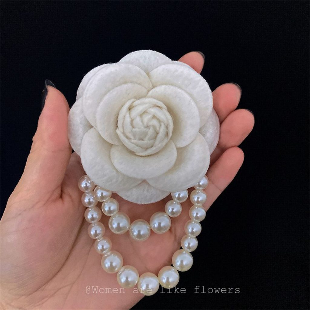 Korean Fabric Camellia Flower Brooch Pins Pearl Tassel Corsage Fashion Jewelry Brooches for Women Shirt Collar Accessories Gift