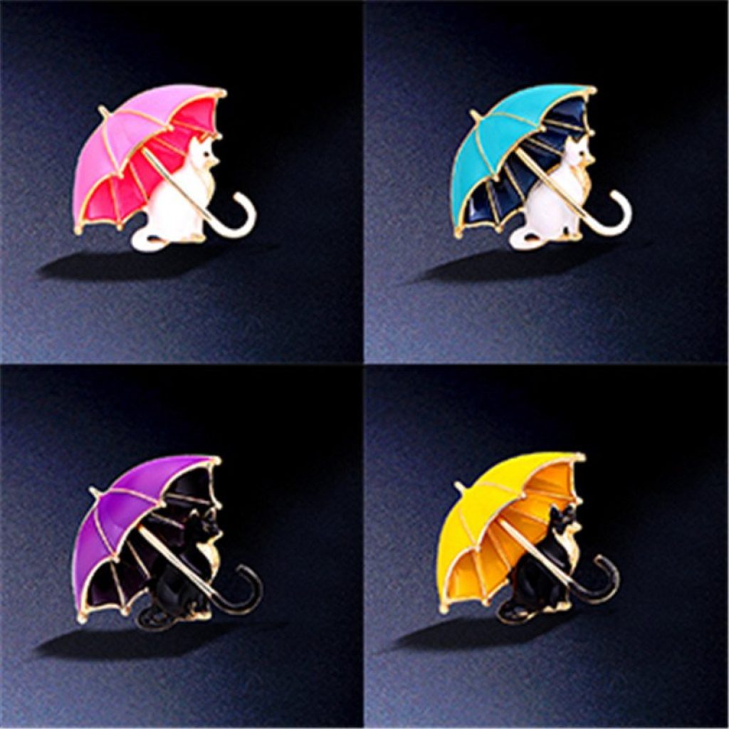 Cute Cat Under Umbrella Brooches For Women Party Casual Brooch Pins Gifts